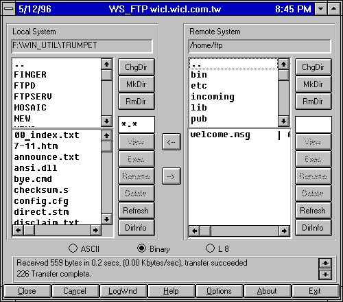 Username = ftp 或 anonymous Password = 本 身 的 E-mail Address, 如 cl@wicl.com.tw
